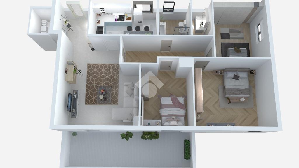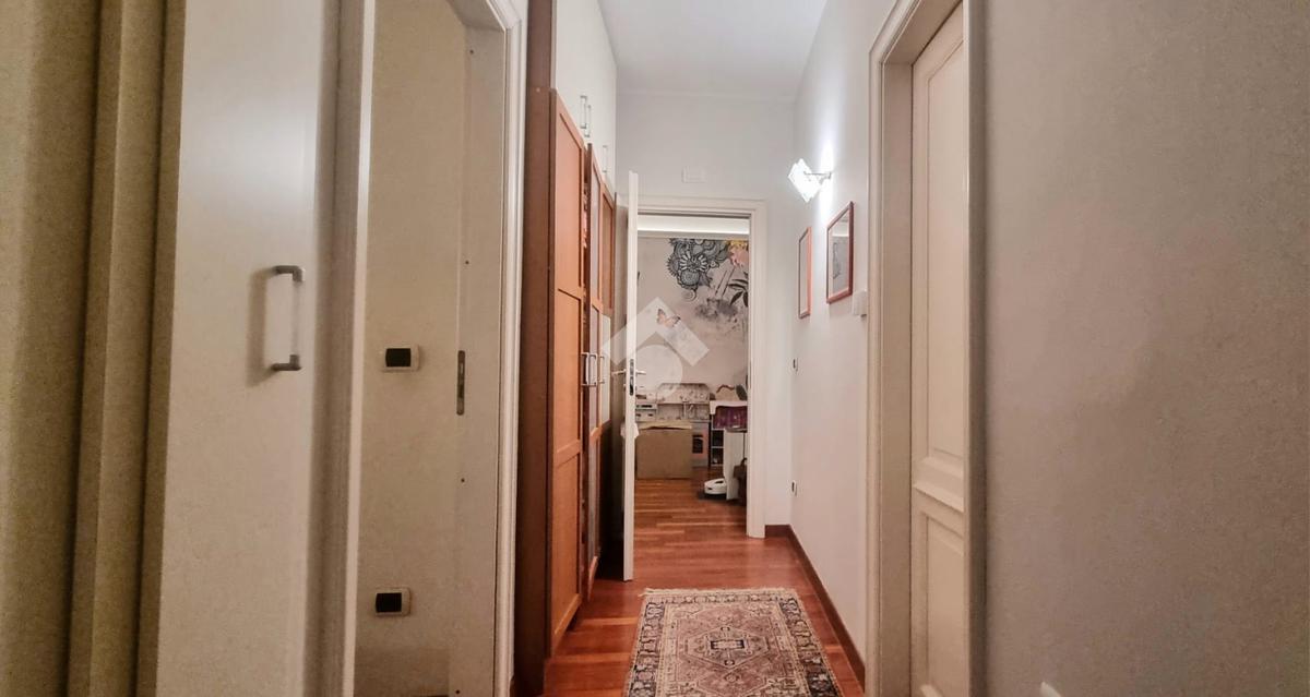 L’immobile, in ottime condizioni interne, si apre su un comodo ingresso che conduce al soggiorno con balcone verandato, ideale come zona relax. La cucina è abitabile, ben organizzata e funzionale. La zona notte comprende tre camere da letto, doppi servizi e un pratico ripostiglio.